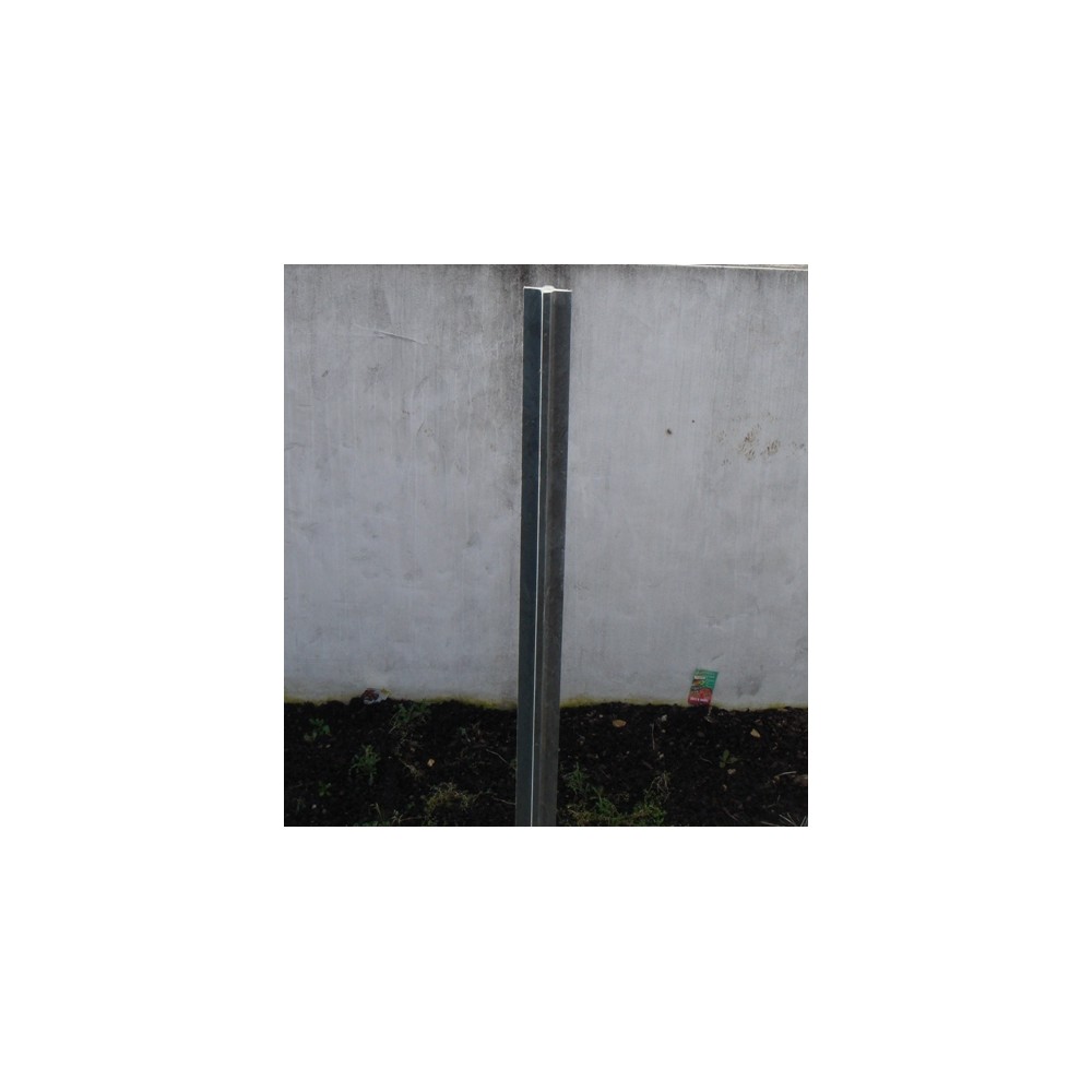 Piquets de clôtures avec profilés en croix et avec pointe en plastique recyclé gris.
